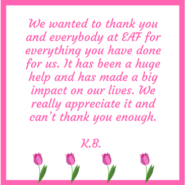 "Our family is beyond grateful for all that Embrace A Family has helped do since our entire world was flipped upside down. They have helped lift a ton of burden off our shoulders during a time where we can focus solely on our daughter and her needs...It certainly has been a Huge blessing!"